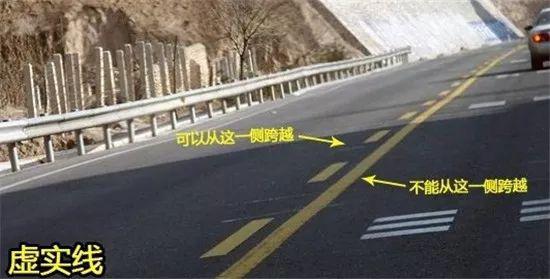 黃色虛實線實線側(cè)禁止車輛越線、虛線側(cè)準許車輛臨時越線。