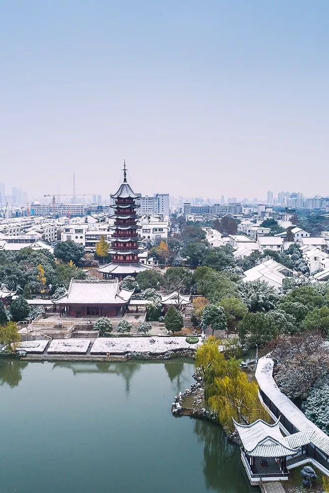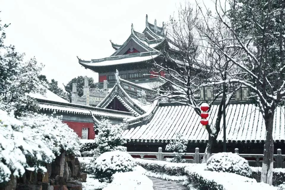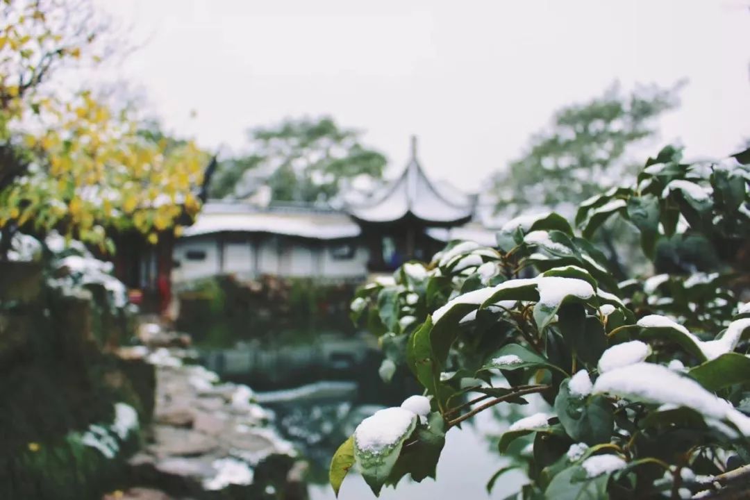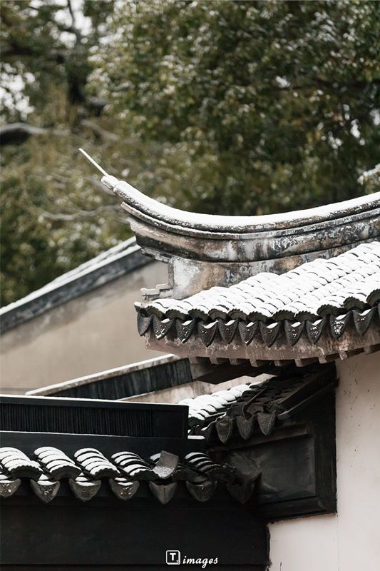 下起來(lái)羞羞答答,附著在亭臺(tái)樓閣上