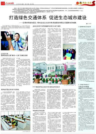 打造綠色交通體系促進(jìn)生態(tài)城市建設(shè)—訪常州市政協(xié)委員常州永安公共自行車系統(tǒng)股份有限公司董事長孫繼勝