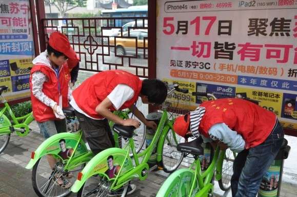 為了提倡愛護(hù)公共自行車,5月19日志愿者自發(fā)在石路站點(diǎn)清潔公共自行車,雖然當(dāng)天下著雨,天氣有些冷,但志愿者依然不辭辛苦的擦拭公共自行車。感謝每位志愿者的辛勤勞動(dòng),感謝他們對(duì)公共自行車的關(guān)心和支持。我們將更好的服務(wù)來回報(bào)每位市民。