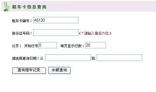 用戶只需將卡號與身份證號碼的最后六位輸入查詢系統(tǒng)中,就可以查詢余額和借還車記錄,如用戶沒有及時查詢余額,我們將會在余額低于20元時電話通知用戶。