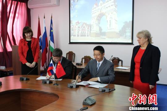中俄雙方代表簽訂布拉戈維申斯克市公共自行車項目建設(shè)意向書 胡書軍 攝