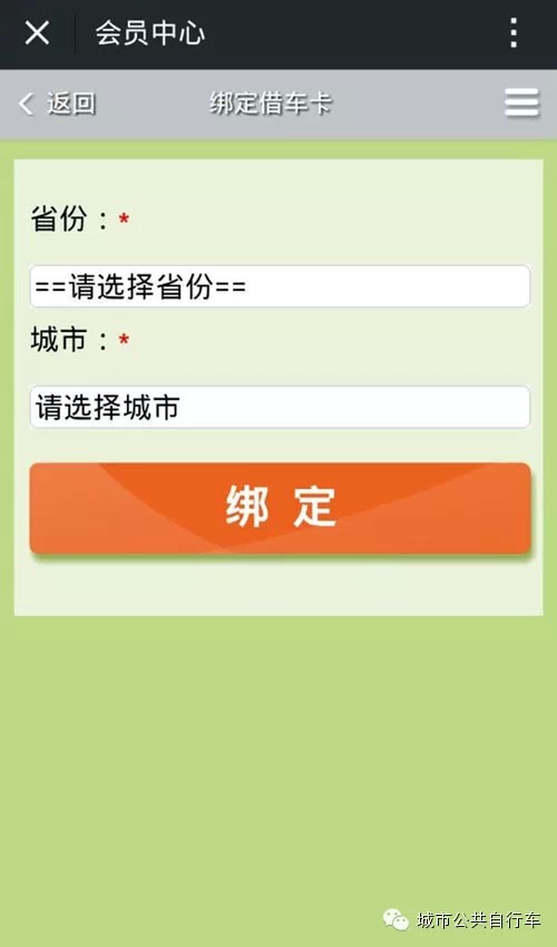 點(diǎn)擊我的借車卡→添加綁定→選擇省份和城市→綁定成功