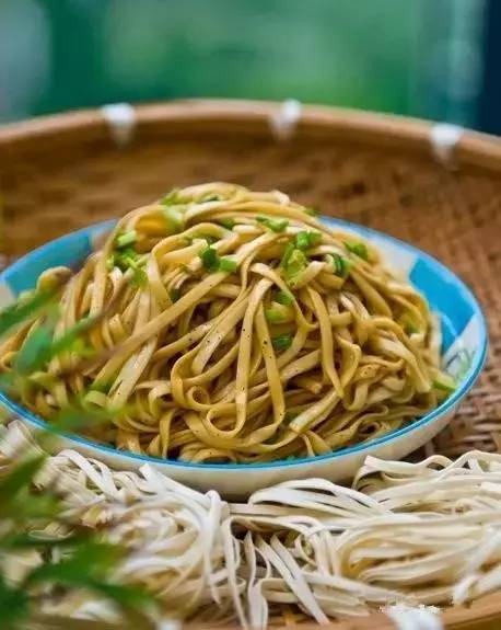 盛夏一到,蘇州人就要牽記風(fēng)扇涼面了。風(fēng)扇涼面一般從6月供應(yīng)到9月,是加了鴨蛋和堿水的小寬面。煮面方法也頗講究:先把面條蒸至六分熟,入沸水煮一下?lián)破?,拌少許食用油,用風(fēng)扇吹涼,再拌上燜肉原湯、糟油、豆芽等,吃起來(lái)爽滑不黏膩,清香有嚼勁!
