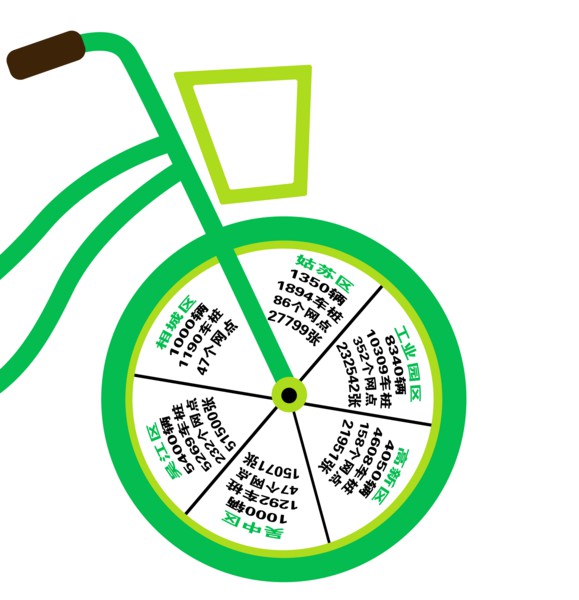 截至8月30日,姑蘇區(qū)、工業(yè)園區(qū)、高新區(qū)、吳中區(qū)、吳江區(qū)、相城區(qū)總計(jì)投入公共自行車21140輛,近35萬市民辦理了公共自行車卡。