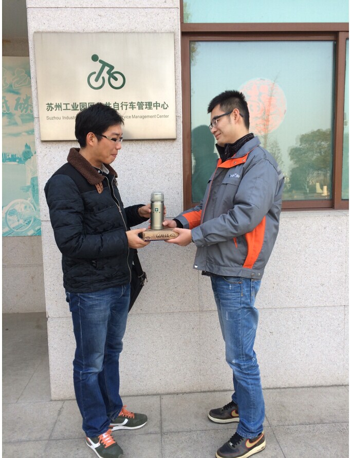 2014年12月23日,我們巡檢師傅進(jìn)行日常工作的時(shí)候在車(chē)籃里發(fā)現(xiàn)了一個(gè)保溫杯和一個(gè)盒子。雖然物品不是很貴重,但是師傅在撿到的第一時(shí)間便聯(lián)系了我們客服人員,將撿到的物品交至公共自行車(chē)管理中心暫為保管。2014年12月29日,拾檢到的物品已被失主的朋友代為領(lǐng)取。