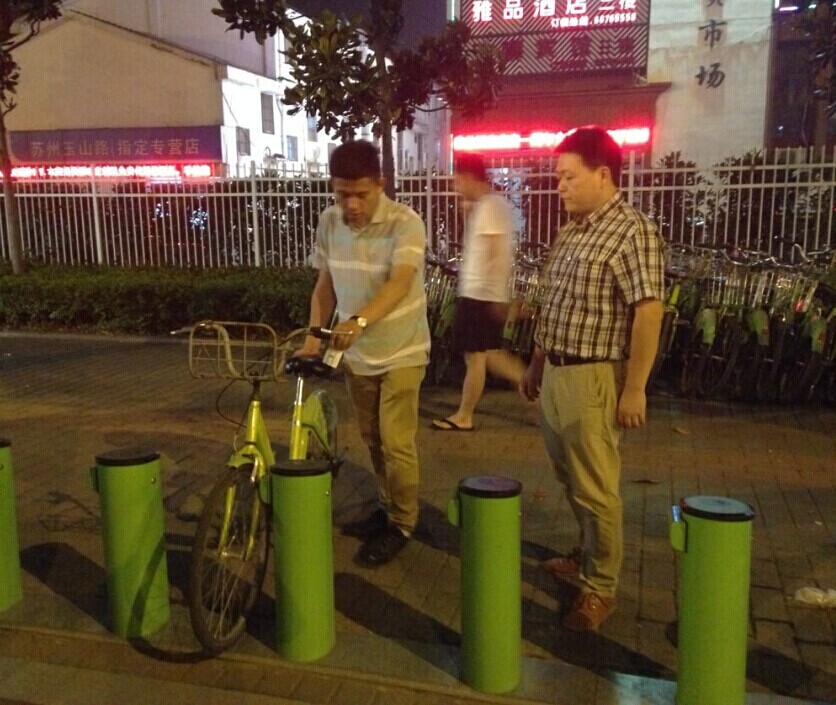 蘇州高新區(qū)城市維護(hù)管理處是高新區(qū)公共自行車項目的監(jiān)管單位。監(jiān)管單位領(lǐng)導(dǎo)張科長和蘇州公共自行車管理中心劉總,在6月18日晚上,放棄休息時間,對高新區(qū)公共自行車站點進(jìn)行了現(xiàn)場突擊檢查。他們對抽查的站點車輛進(jìn)行逐一檢查。檢查結(jié)果車輛擺放整齊、備車規(guī)范、備車實數(shù)與后臺系統(tǒng)顯示相同,衛(wèi)生狀況良好,經(jīng)當(dāng)晚系統(tǒng)匯總后,高新區(qū)區(qū)內(nèi)公共自行車保有量達(dá)到92%以上。