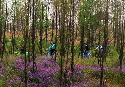 4月18日,永安員工伴著和風(fēng)絮語,單程騎行10公里,來到新龍森林公園進(jìn)行了一次“森呼吸”。鳥語花香,一輛輛顏色鮮艷的公共自行車在林蔭道間穿梭,永安員工沿路播撒著歡聲笑語,與大自然來了一次親密的接觸。