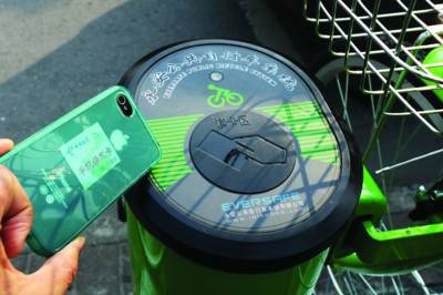 這張比郵票稍大的標(biāo)貼卡可貼在手機(jī)上、皮夾里,使用時(shí)只需在公共自行車站點(diǎn)照一照就可以完成借、還車。