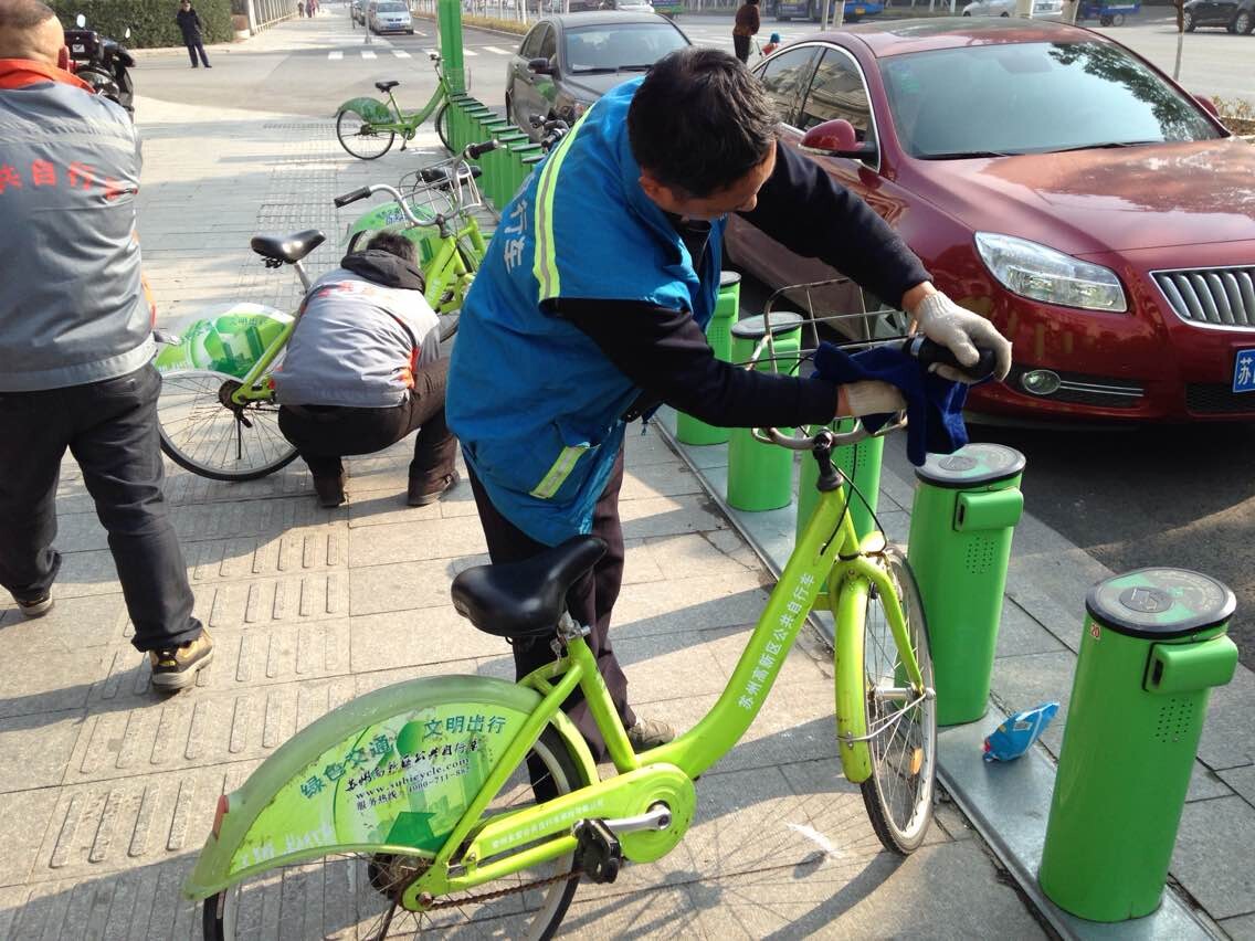 蘇州公共自行車發(fā)展迅猛,四年的時(shí)間里已建成1097個(gè)網(wǎng)點(diǎn),投入26000輛自行車,部分設(shè)備經(jīng)過多年的使用后,成色已舊,特別是自行車,故障多,外觀破損多。