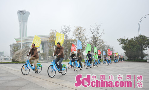中國(guó)山東網(wǎng)濰坊頻道11月1日訊 濰坊公共自行車項(xiàng)目自去年11月1日正式運(yùn)營(yíng)以來(lái),至今已一年時(shí)間。為讓更多人選擇公共自行車出行方式,今日上午,濰坊市市政局舉行“慶祝濰坊公共自行車運(yùn)行一周年騎行活動(dòng)”,并為全市騎行數(shù)量最多和騎行時(shí)間最長(zhǎng),以及第一名辦卡的市民頒獎(jiǎng),其中騎行時(shí)間最長(zhǎng)的市民共計(jì)騎行58451分鐘,即平均每天騎行兩個(gè)半小時(shí)以上。