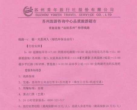 5.19—中國旅游節(jié)。為了紀(jì)念中國的第二個旅游節(jié),蘇州旅游局設(shè)在鳳凰街的旅游咨詢服務(wù)中心正式啟動,此次把蘇州公共自行車也融入到旅游產(chǎn)品之中。