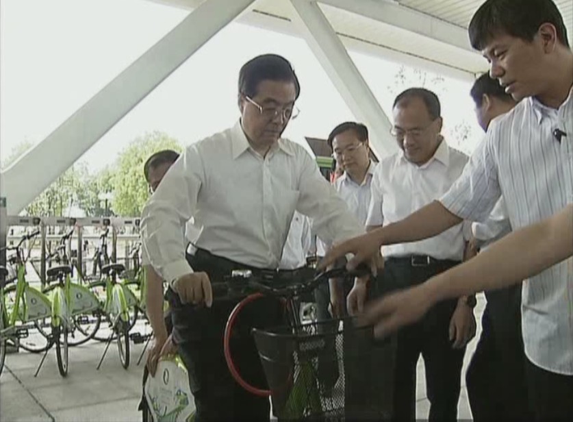 胡景濤主席親自體驗(yàn)公共自行車